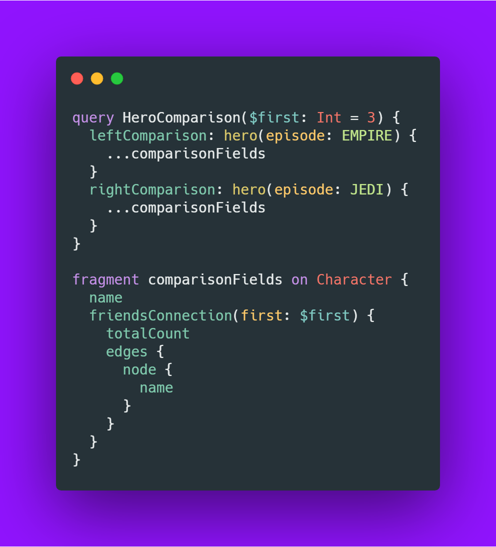 Com os fragments podemos construir conjuntos de campos e inclui-los nas consultas necessárias.