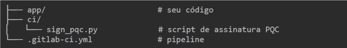 A seguir, um exemplo completo de pipeline GitLab CI/CD que implementa a abordagem híbrida: ela gera um manifesto de hashes, assina com RSA-3072 (clássico) e depois com Dilithium3 (pós-quântico) usando liboqs-python.
