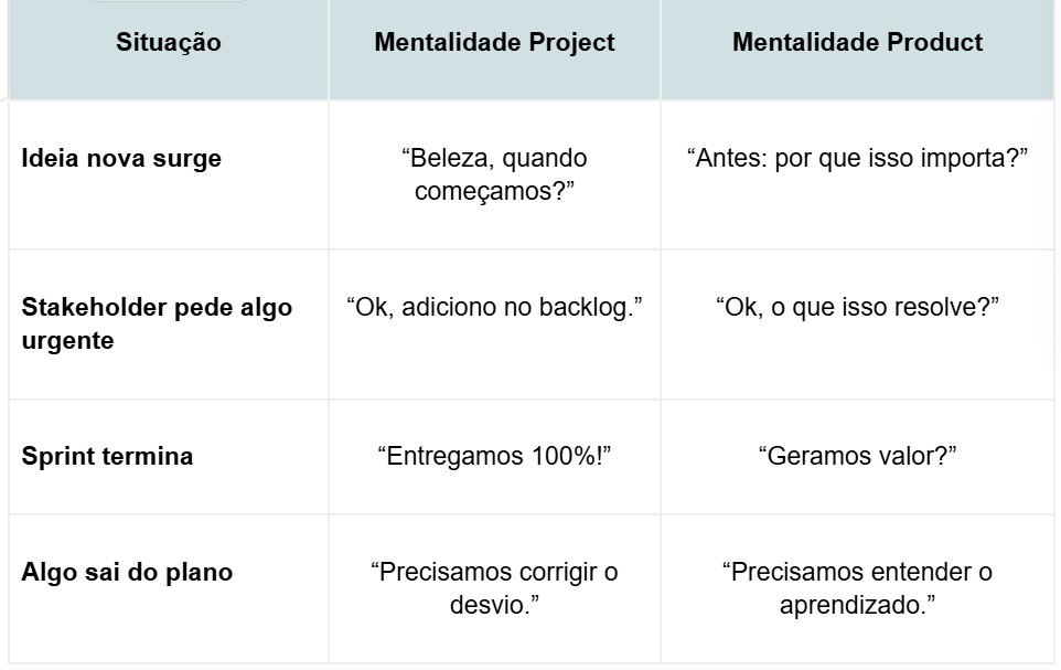 E, no fundo, é até engraçado: enquanto o Project Thinking tenta controlar tudo, o Product Thinking tenta entender o porquê.