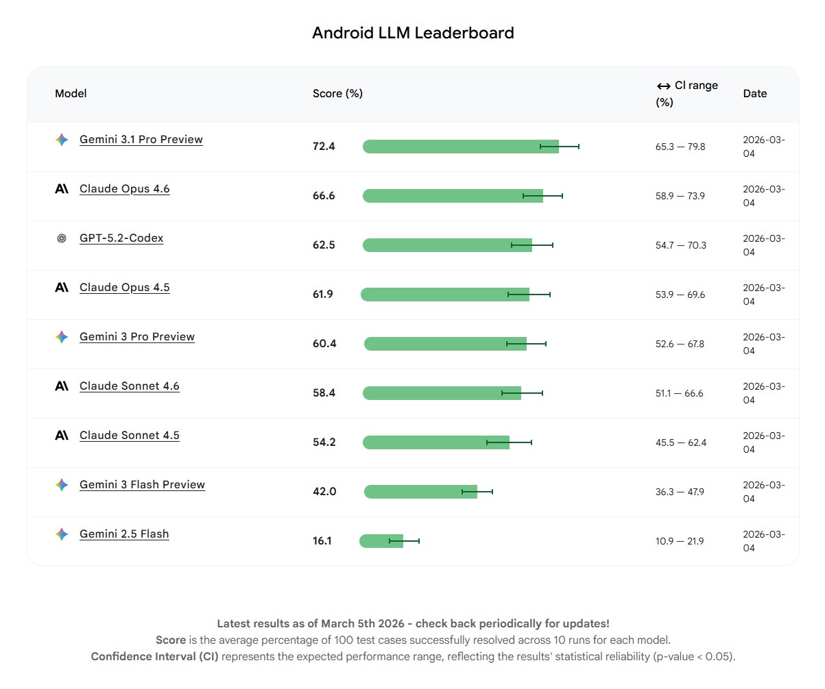 Batizada de Android Bench, a nova referência cria um ranking que mede o desempenho de sistemas de IA em desafios práticos enfrentados por desenvolvedores Android. A ideia é ajudar equipes de engenharia a identificar quais ferramentas realmente compreendem as particularidades da plataforma e conseguem contribuir para melhorar a qualidade dos aplicativos.