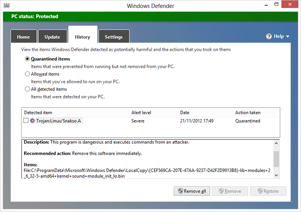 Um artigo completo sobre o rootkit está no blog da CrowdStrike. Ainda não se sabe como o servidor foi infectado. A Kaspersky adicionou a detecção do malware em seu antivírus e outras empresas de segurança também – o Windows Defender já detecta a ameaça como Trojan:Linux/Snakso.A.