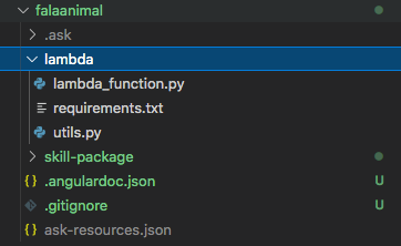 Finalizado esse processo, podemos conferir nas imagens abaixo a estrutura do projeto que é a mesma estrutura que foi criada e poderá ser acessa via developer console na Amazon e a imagem da direita mostro o projeto devidamente criado na minha conta.