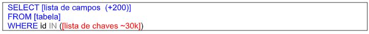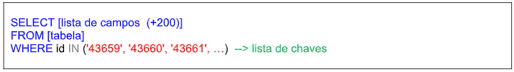 Para isso, eu havia recebido um arquivo CSV com a lista de chaves que deveria buscar. Portanto eu precisava criar uma consulta SQL bem simples, como mostra o quadro abaixo.