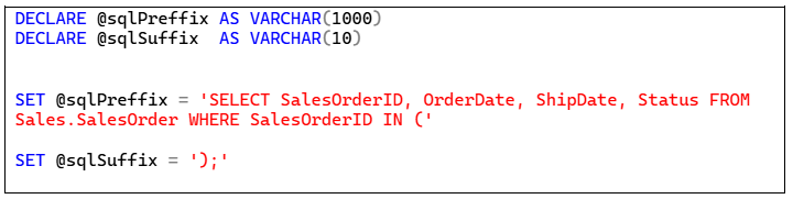 Definida a estratégia, começo alterando a variável @sqlPreffix, que se converte em uma operação de inserção na tabela #tempSQL.