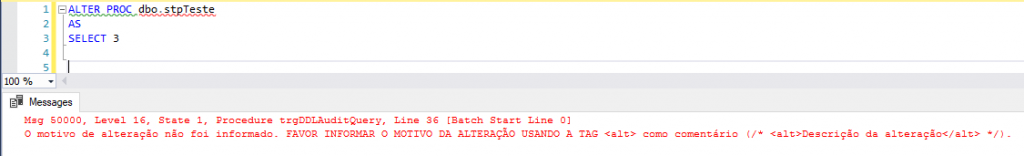 RAISERROR('O motivo de alteração não foi informado. FAVOR INFORMAR O MOTIVO DA ALTERAÇÃO USANDO A TAG <alt> como comentário (/* <alt>Descrição da alteração</alt> */).', 16, 1)