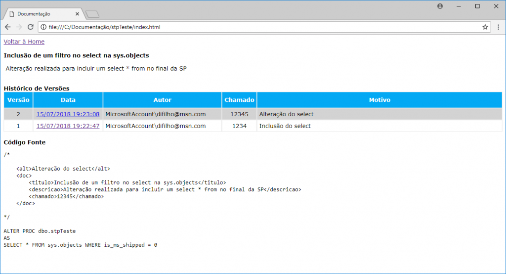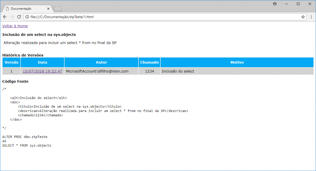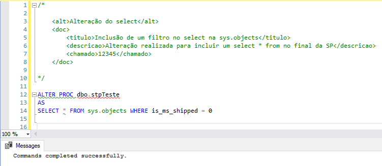 <descricao>Alteração realizada para incluir um select * from no final da SP</descricao>